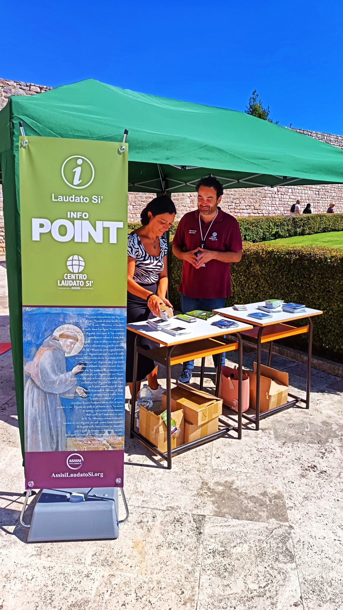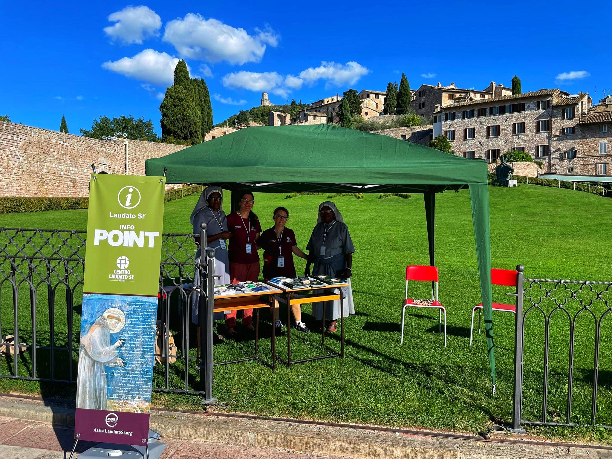Nel “Giardino della Pace”, lungo tutto il mese di settembre, è stato attivo un InfoPoint grazie al lavoro dei Volontari del Centro Laudato Si’ che provengono da varie parti d’Italia e del mondo. L’apertura straordinaria del prato di San Francesco è sempre un’occasione per riscoprire la preghiera nel creato, e vivere opportunità di incontro e di dialogo con realtà provenienti dai luoghi più svariati.