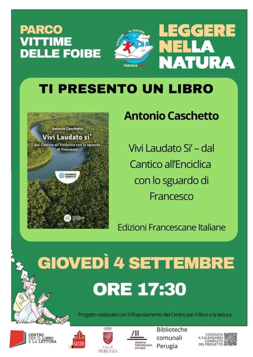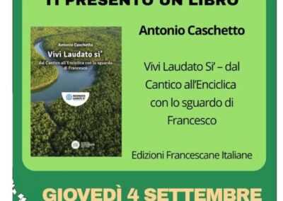 Un momento particolare è stato vissuto il 4 settembre, presso il Parco Vittime delle Foibe a Perugia, all’interno della rassegna “Leggere nella natura”, con la lettura del libro “Vivi Laudato Si’” delle Edizioni Francescane Italiane. L’evento, organizzato insieme ai Circoli Laudato Si’ di Perugia, Foligno e Assisi, ha consentito la lettura all’aperto di brani del libro, e condivisioni sul cammino svolto in questi anni