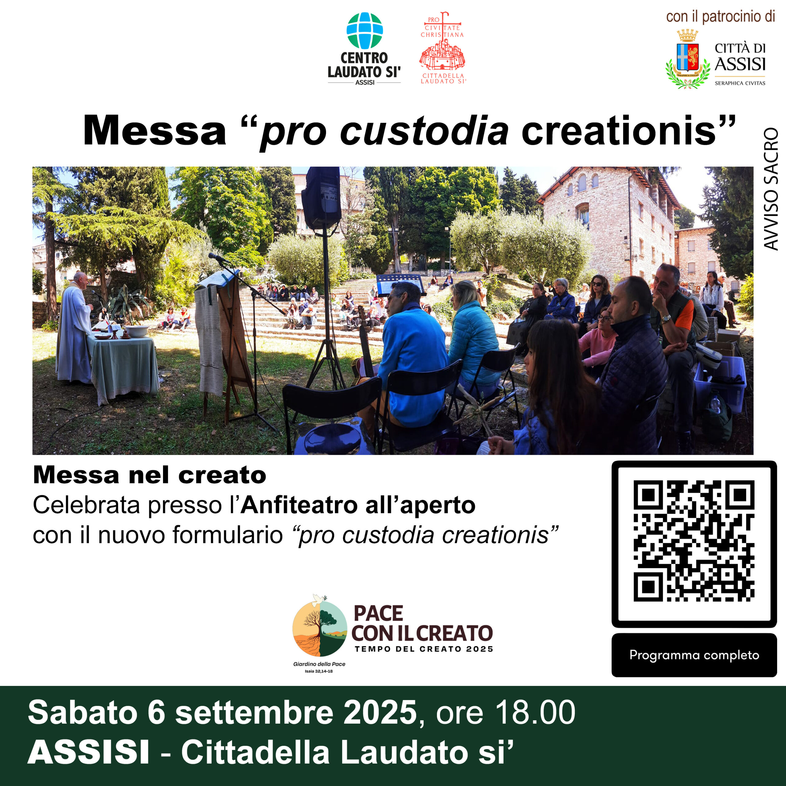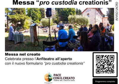 Il 6 settembre, presso l’anfiteatro della Cittadella Laudato si’, è stata celebrata la messa con il formulario “pro custodia creationis”. Particolarmente simbolica la celebrazione, nel contesto di Tempo del Creato, perché proprio la Cittadella ha ospitato i convegni sulla “festa della Creazione in Cristo”, organizzati in questi due anni insieme all’Istituto di Ricerca Laudato Si’ di Oxford e a numerosi Partner ecumenici, e il cui primo frutto è stato proprio questo formulario diffuso dal Vaticano nei mesi scorsi.