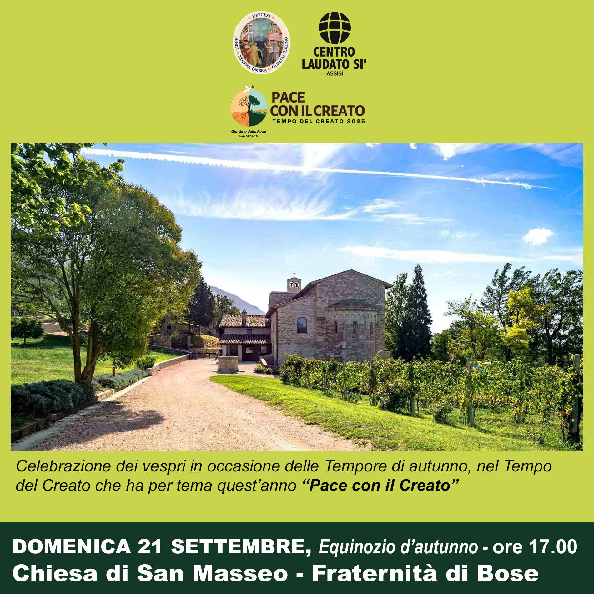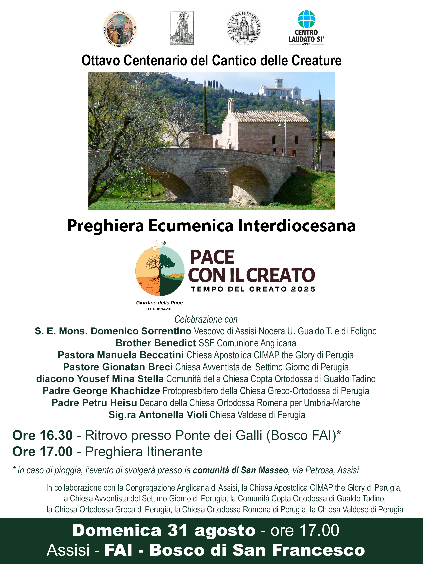 Assisi è la Terra Laudato Si’ per eccellenza, e ha il dovere di annunciare al mondo, soprattutto durante il Tempo del Creato, i valori dell’ecologia integrale. Ha il dovere di unire e motivare coloro che, durante tutto il mese, si impegnano localmente coinvolgendo nella preghiera e nell’azione le proprie realtà.