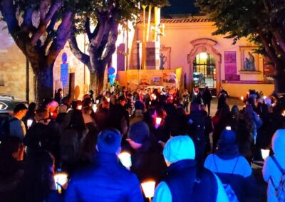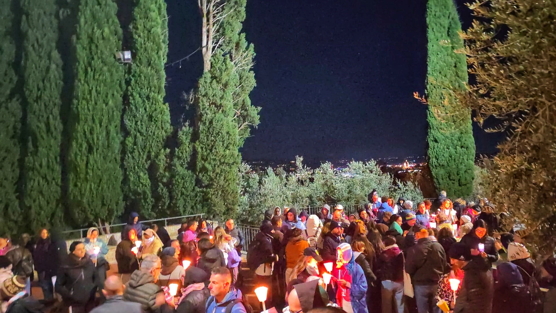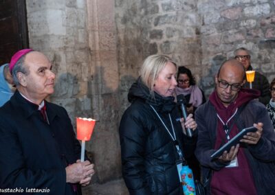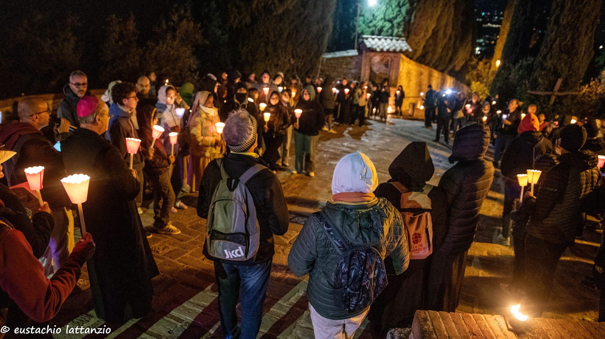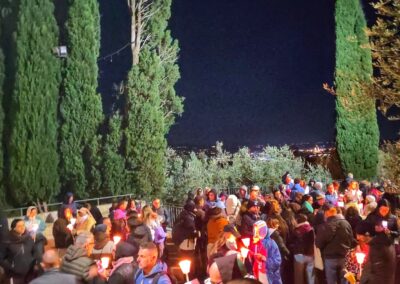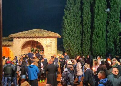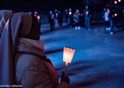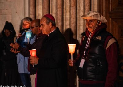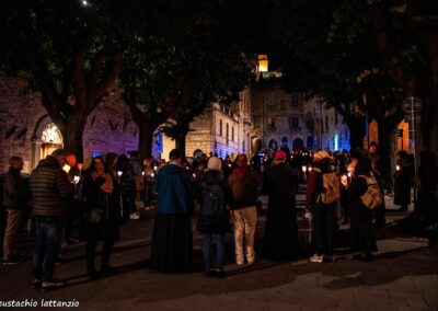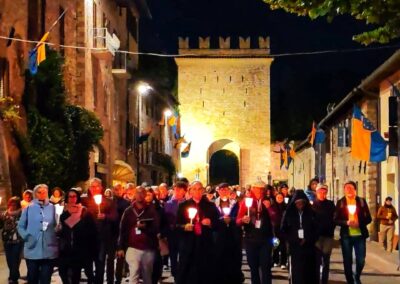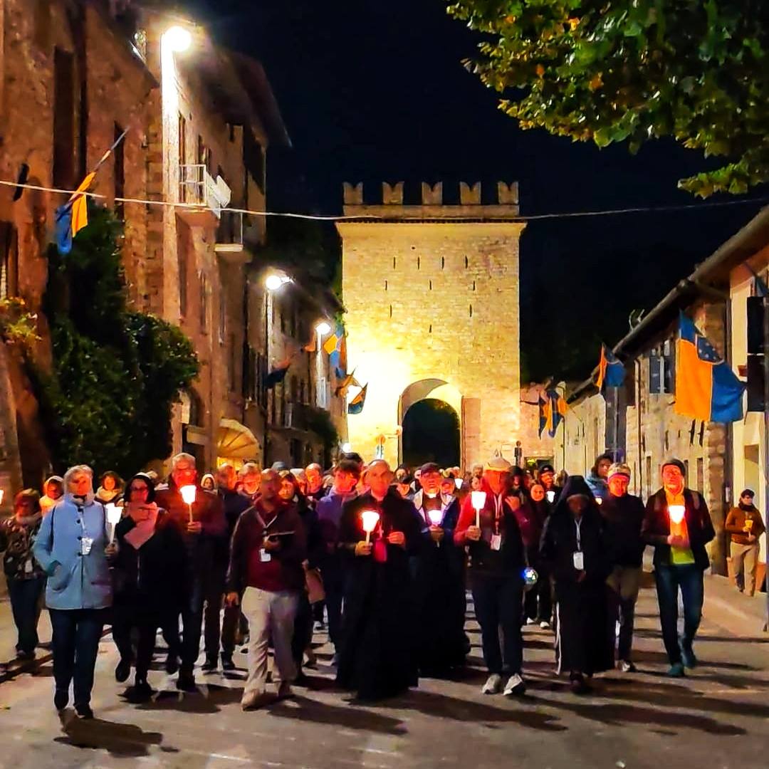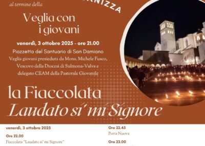 L’evento di chiusura di Tempo del Creato è stato vissuto nella notte del 3 ottobre, nel cuore dei festeggiamenti solenni di San Francesco. La “Fiaccolata Laudato si’ mi Signore”, organizzata con la Pastorale Giovanile della Conferenza Episcopale Abruzzo e Molise, e con la Famiglia francescana, ha visto la partecipazione di tanti ragazzi, e un clima di preghiera e contemplazione del silenzio, orientato all’azione, sulle note del Cantico delle Creature, letto in varie lingue lungo il percorso. L’itinerario guidato da mons. Michele Fusco, delegato CEAM della Pastorale Giovanile, è stato segnato da fiaccole, grazie alla collaborazione con la Città di Assisi e l’ente Calendimaggio.